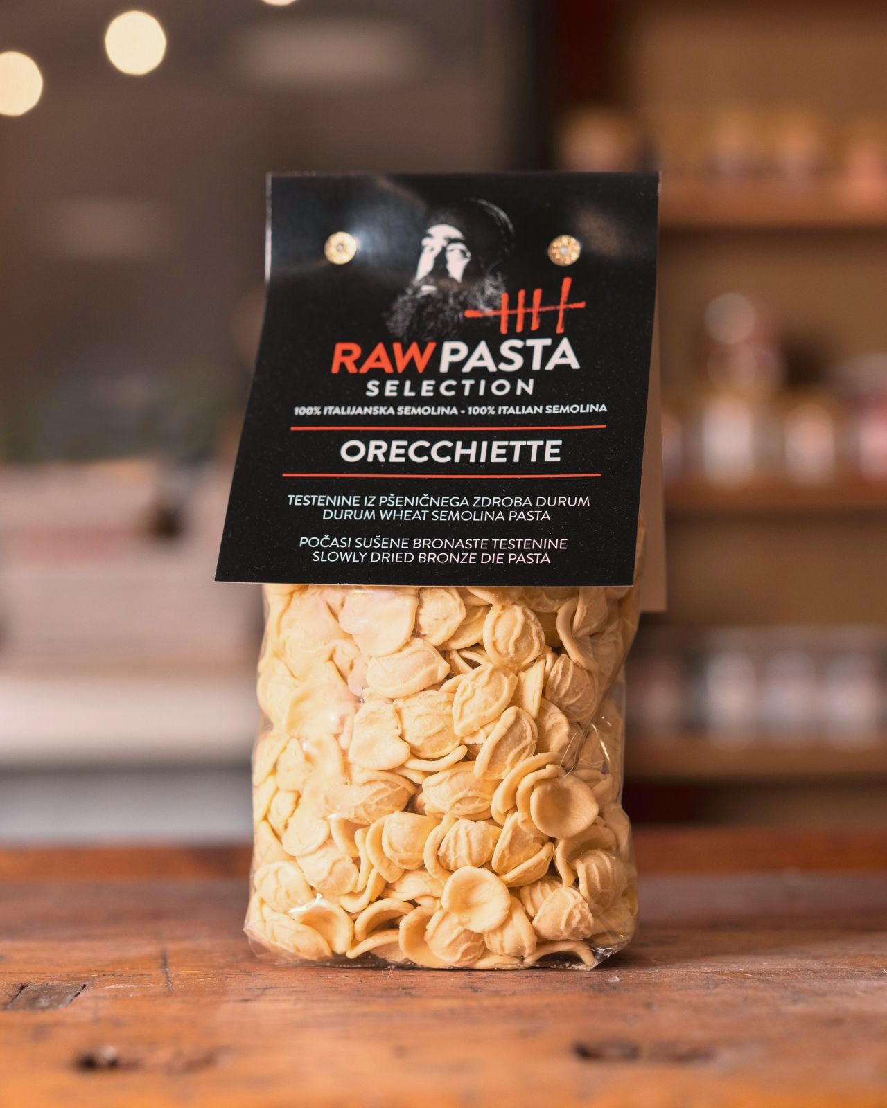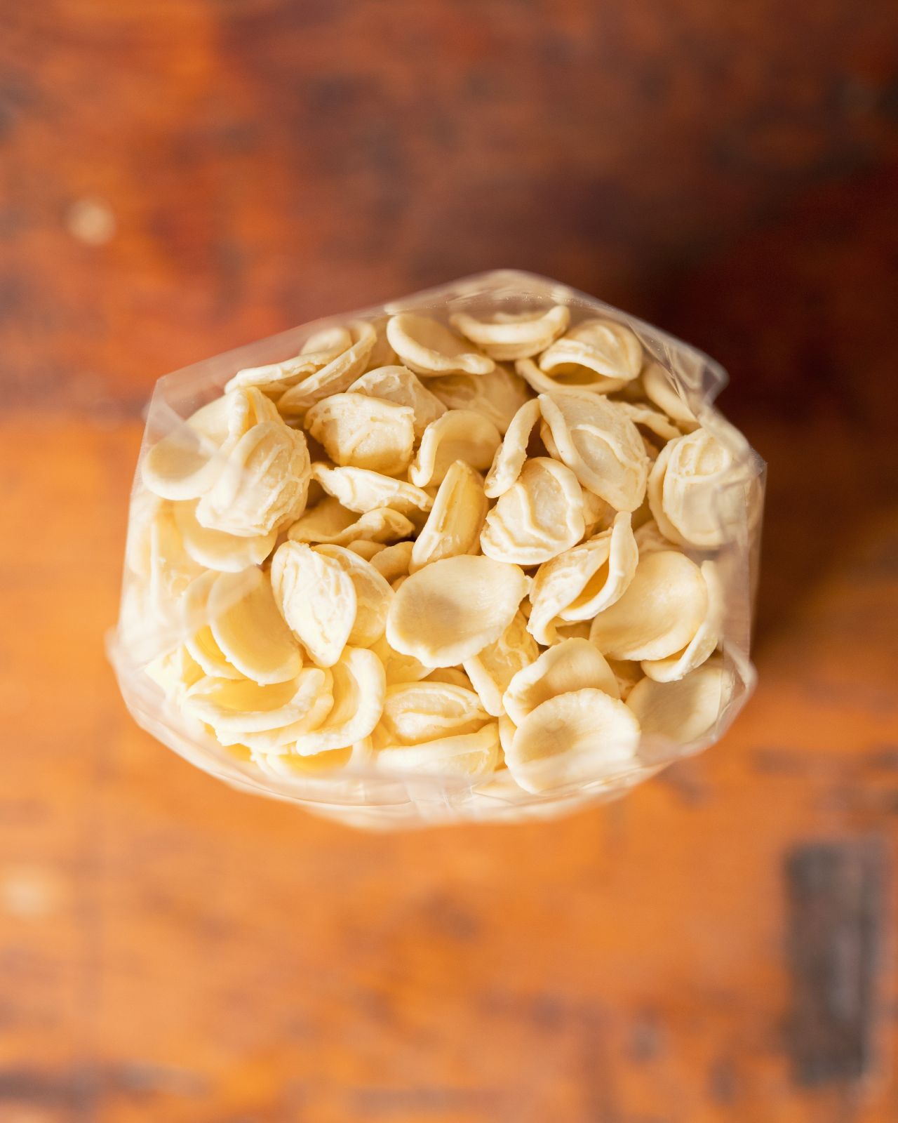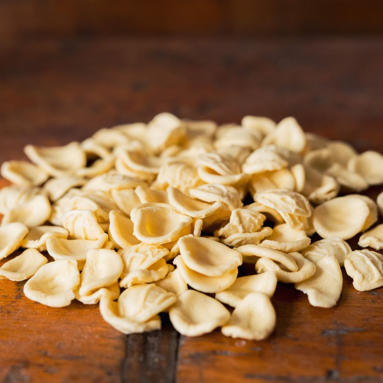 Orecchiette so ene od ikoničnih oblik testenin v Puglii, še posebej tiste iz območja Barija. Njihova usločena oblika in hrapava površina dobro zadržujeta omake, gosto testo pa jih naredi prijetne in vedno “al dente”. Odlično se podajo k zelenjavi, kot sta brokoli ali repa, morda z dodatkom klobase. Poskusite pa jih tudi z mesnim ali divjačinskim ragujem.
